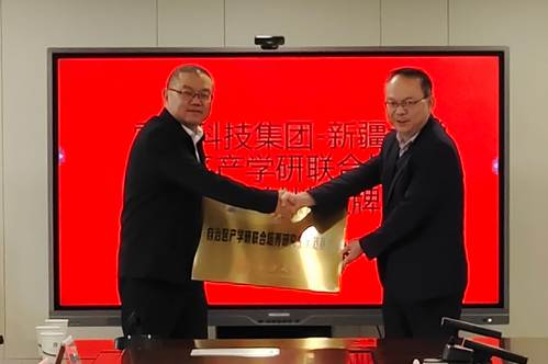 段海明经理和姜兆新总经理共同为自治区产学研示范基地揭牌