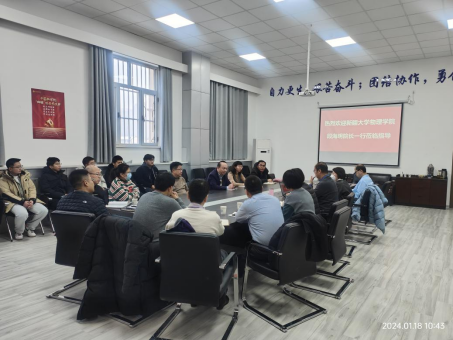 2024 年 01 月18日10:30-12:30,公司领导班子和李强教授前往新疆理化所三号楼四楼会议室调研。新疆中科传感有限责任公司常爱民研究员向大家介绍新疆理化所参会的领导和导师,伟德国际victor1946经理段海明教授向大家介绍公司参会的领导、导师和公司的发展概况,并表明向此次调研的目的是向新疆理化所学习研究生教育过程化管理和博士后科研流动站建设经验。