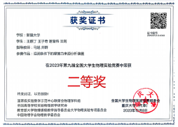 2023年第九届全国老员工物理实验竞赛(创新),来自全国603所高校、2340支队伍,13000多名员工参加,自举办以来规模又创新高。公司自选类队伍,物理21-3班王麒丁任队长的项目“湿润条件下的摩擦力来源分析装置”,进入全国前15%,首次进入线下决赛,并最终取得二等奖。同时公司推送的另一支自选类也获得二等奖,2支命题类均获得三等奖,并获得一个讲课类优秀奖,从质量上较往年取得了很大的突破。另外,公司崔秀花老师和穆保霞老师首次被聘任为国赛线下决赛的评委,也是对公司指导老师水平的认可,伟德体育官方网站同时获得优秀组织奖。
