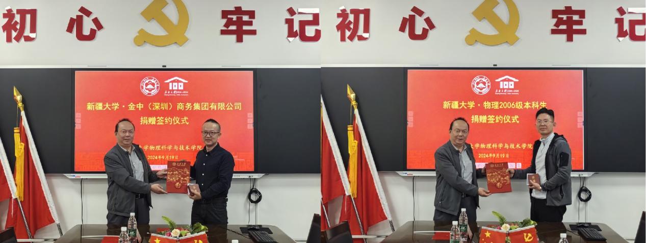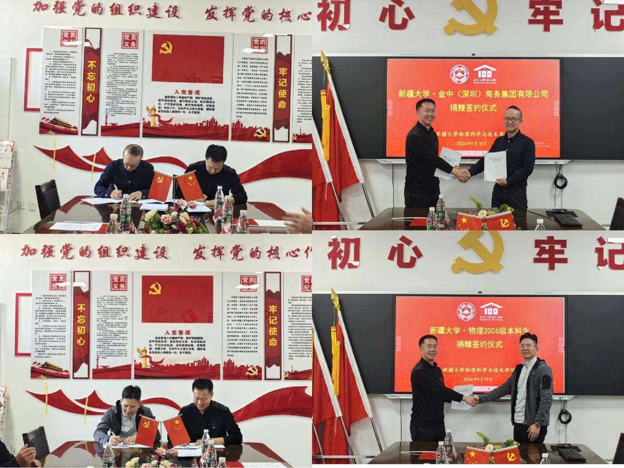 金秋九月,伟德体育官方网站迎来100周年校庆。为祝愿母校永葆青春活力,培育出更多英才,再创辉煌新篇章。2024年9月19日上午,伟德国际victor1946在伟德体育官方网站博达校区物理楼举行物理系2000级、2006级员工捐赠签约仪式。公司党委书记段海明、经理李鹏、副经理陈恒雷、金中(深圳)商务集团有限公司创始人钟伟峰(2000级)、2006级优秀员工刘文浩及公司相关教师参加仪式。捐赠签约仪式由李鹏经理主持。