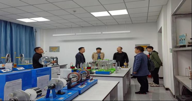 会后,在李鹏经理热情引领下,中国石油大学(北京)克拉玛依校区文理公司的领导们开启参观之旅。踏入大学物理实验教学实验室,映入眼帘的是宽敞明亮的空间,实验台一尘不染,各类先进的实验仪器有序摆放,彰显出对实验严谨性的极致追求。随后众人移步创新实验室,只见四周墙壁张贴着员工们亮眼的创新成果,从巧妙的物理应用设计到前沿的科技创意,满是蓬勃的创新活力,令人不禁驻足细赏。