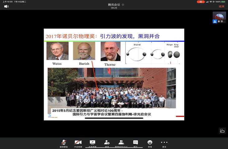 2020年7月14日星期二北京时间上午10:00蔡荣根院士在线上为公司师生带来了“黑洞、引力波和宇宙学”的讲座,在讲座上,蔡荣根院士介绍了黑洞、引力波的发展和研究史,向师生介绍了宇宙学的基本一些基本问题;例举了非常多研究案例,清晰的讲述了黑洞和引力波是爱因斯坦广义相对论的二大预言,引力波的观测为探索宇宙深层次的奥秘提供了一个强有力的手段。