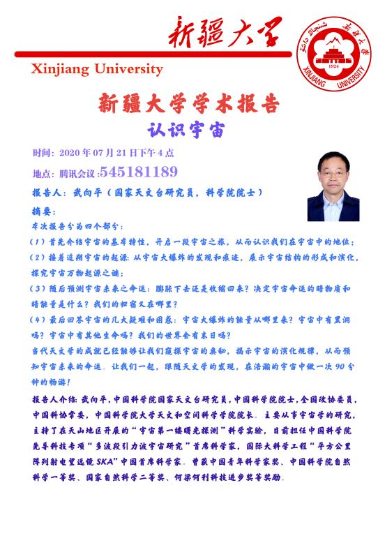 报告人: 武向平 国家天文台研究员、中国科公司院士
