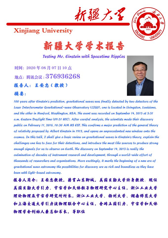 报告题目: Testing Mr.Einstein with Spacetime Ripples
