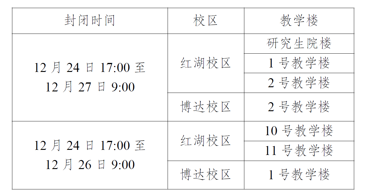 2022年全国硕士研究生招生考试将于2021年12月25日至26日进行。公司作为考点,届时将对涉考楼宇进行全封闭管理,期间仅允许涉考人员进出。课程受到影响的,请教师办理调课手续。